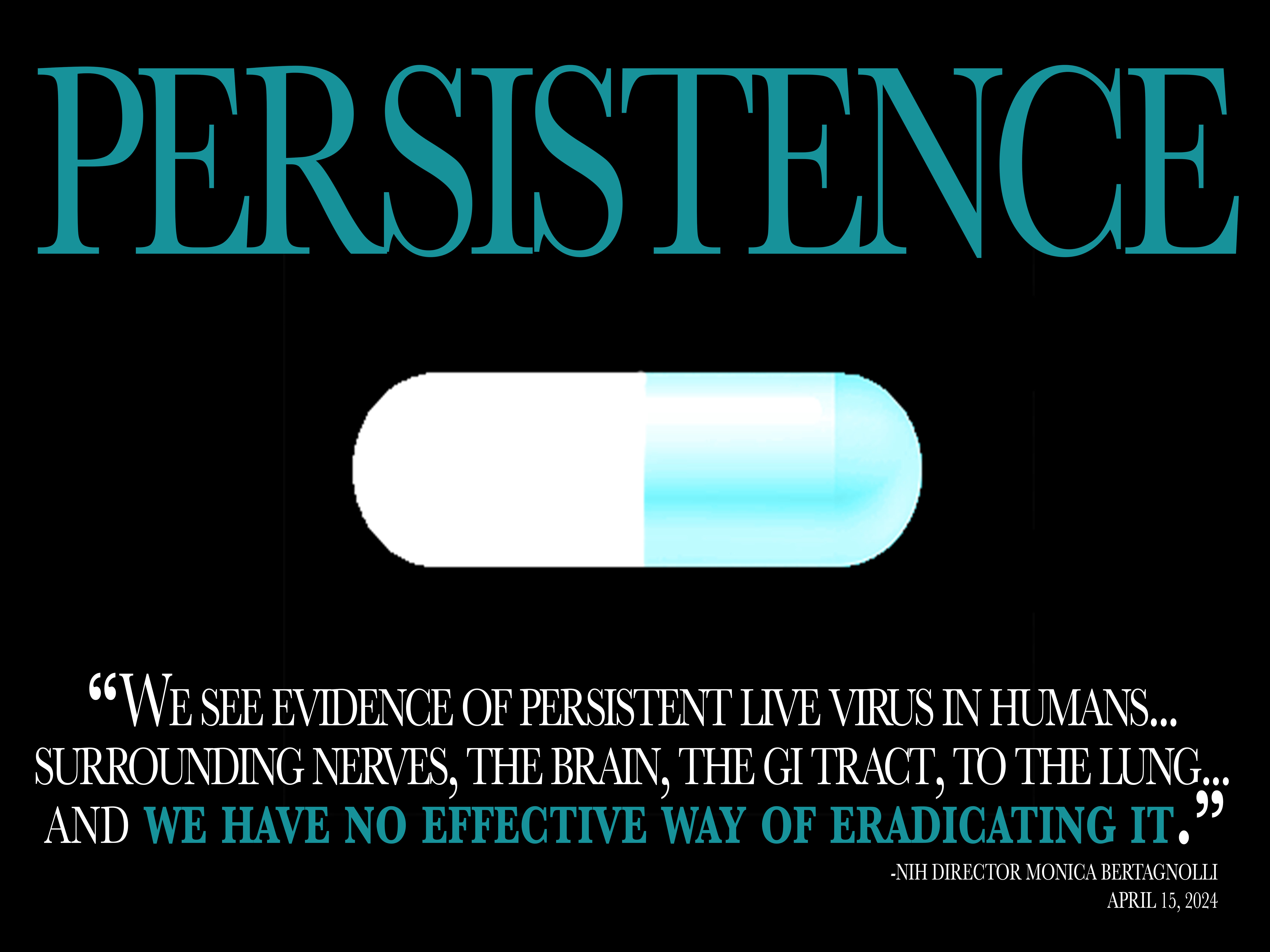So what we have is chronic COVID infections - LIVE virus - in human tissue. In our brains, lungs, nerves, GI tracts, and who knows where else. It isn’t detected on PCR tests, and we have nothing to treat it. We’re being offered $1B/yr TO SHARE with a bunch of other “infection-associated chronic conditions” instead of being adequately funded and instead of adequately funding any of those other “IACCs.” No one wins, everyone suffers, the government prospers.