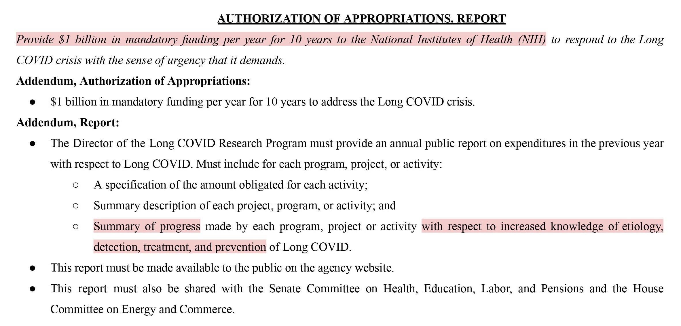 You also should know that critics of NIH budgets and funding proposals have been concerned for years that private institutions are going to have better opportunities at advancing research due to constraints and political motives within NIH. The FY2024 NIH budget confirms that Long COVID is not only not a priority, it is hardly mentioned at all. The topic is briefly mentioned on 3 separate pages, and once is simply to pat the agency on the back for their work in monitoring the situation. (Yes, I read the budget - pages 4, 60, 62.) The FY2025 NIH budget request was submitted a month ago. More info here.